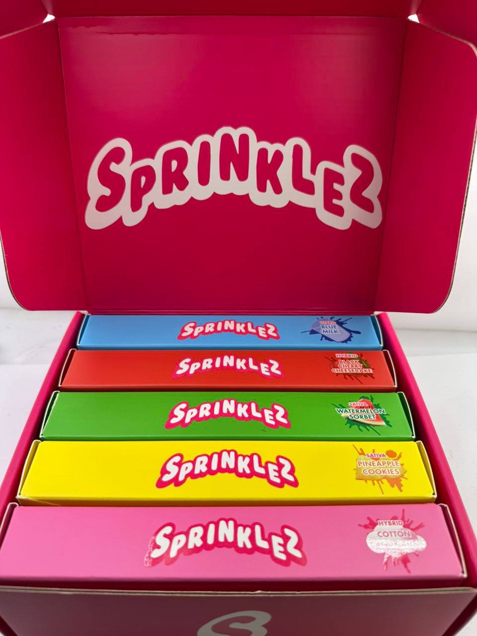 Sprinklez offers a delightful variety of flavors to cater to every palate. There’s a strain-specific flavor for everyone, including options such as:
